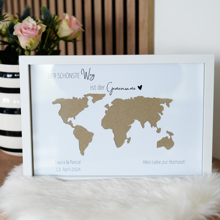 Mach das Schenken von Geld zu einem besonderen Erlebnis mit unserem Poster Geldgeschenk „Weltkarte“. Dieses einzigartige Poster in der Größe 20×30 cm kombiniert die Schönheit einer stilvollen Weltkarte mit der Möglichkeit, Reiseträume wahr werden zu lassen. Ob für eine Hochzeit, einen Geburtstag oder einen anderen besonderen Anlass – dieses Poster ist eine originelle und ansprechende Art, ein Geldgeschenk zu überreichen.