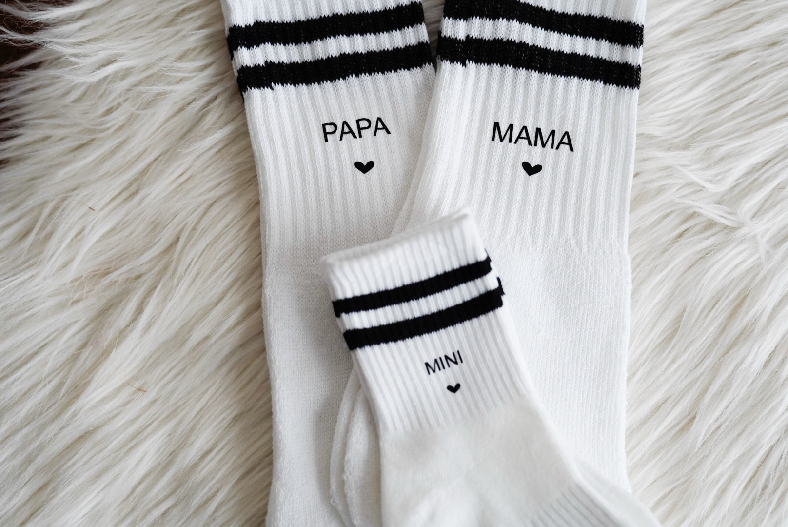 Passend zu den Socken Mama und Papa, passen die Socken für die Babys, um ein tolles Familienoutfit zusammen zu stellen.